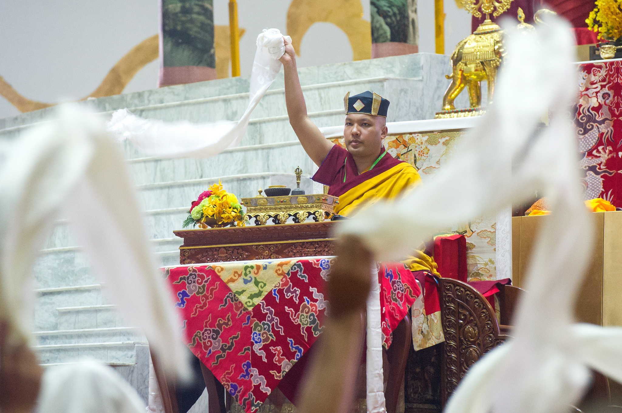 After the reading of the Great Aspiration and of the Dedication for the Living and Deceased—and a reminder that it was through the sponsoring of these prayers that the Mönlam was made possible—His Holiness took the time to extensively thank all those whose contribution had ensured a successful 34th Kagyu Mönlam: Lama Chodrak, and all the tulkus who had worked very hard alongside everyone else; Tergar Monastery, Yongey Mingyur Rinpoche and all the workers there who had offered 100% support; the Kagyu Gunchoe, whose workers had become Mönlam workers too; and the workers from the Tsurphu Labrang who, whether operating in ordinary circumstances or in the whirlwind of the Mönlam, made everything possible for it to go well.