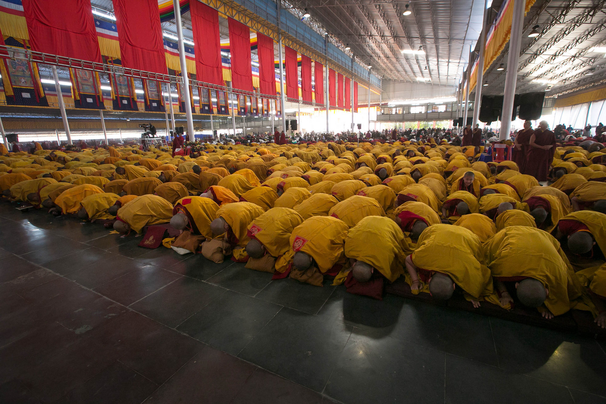 This completed the introduction to the Karmapa’s lineage, detailing what is special to it, and in the afternoon he will explain the visualizations for the practice of the Four-Session Guru Yoga.