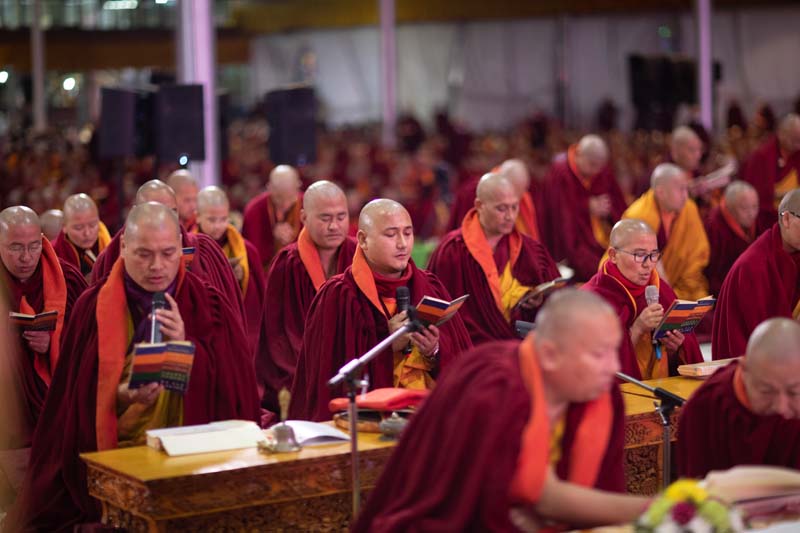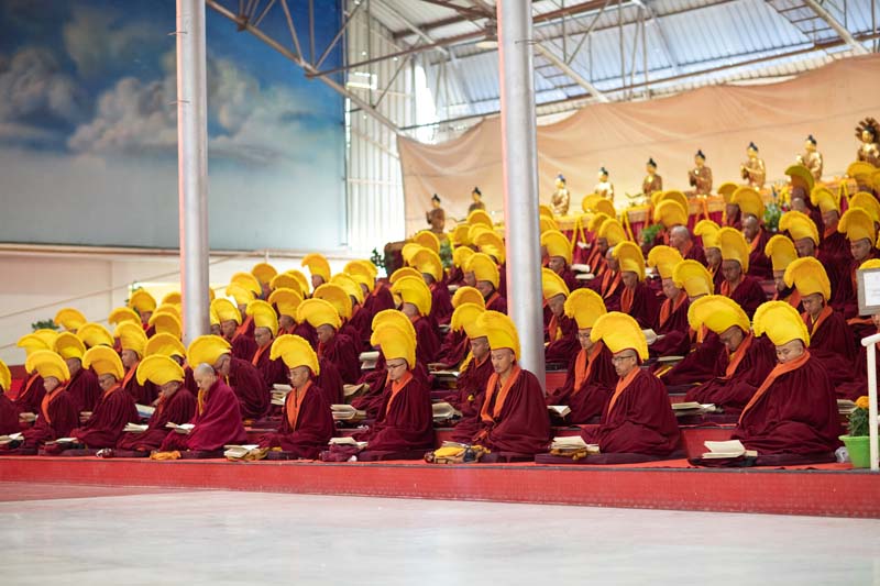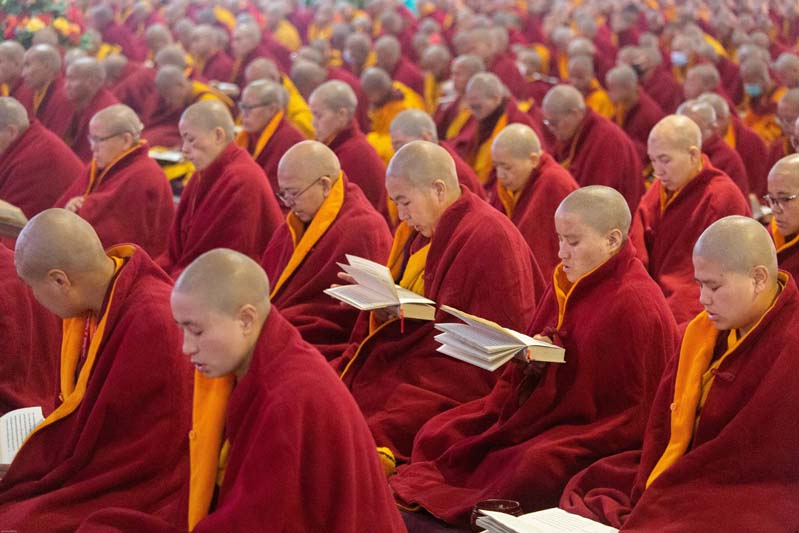 9. The chanting is led by a team of four umdzes—two monks and two nuns. This is the third year that nuns have been part of the team.