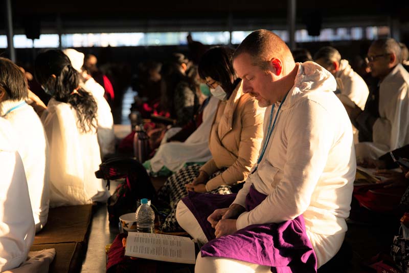 3. Those taking the vows kneel with heads bowed to recite the prayers.