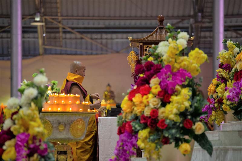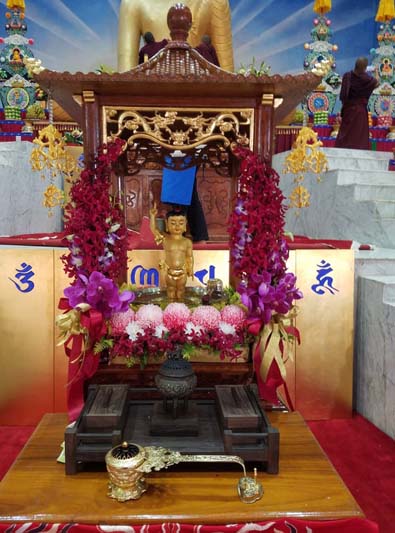 5. The focus of the Twenty Branch Monlam is a shrine below the golden Buddha image.