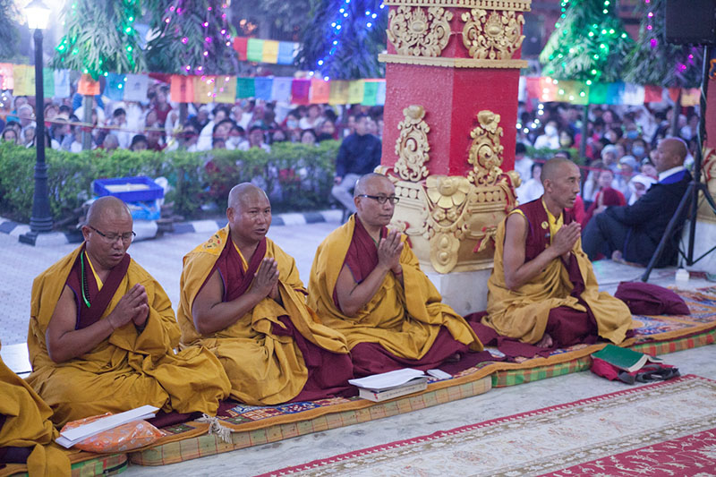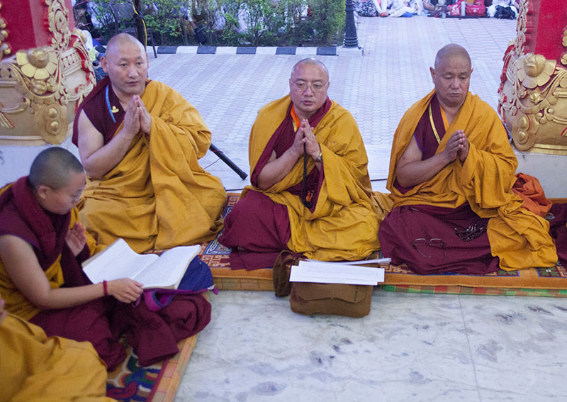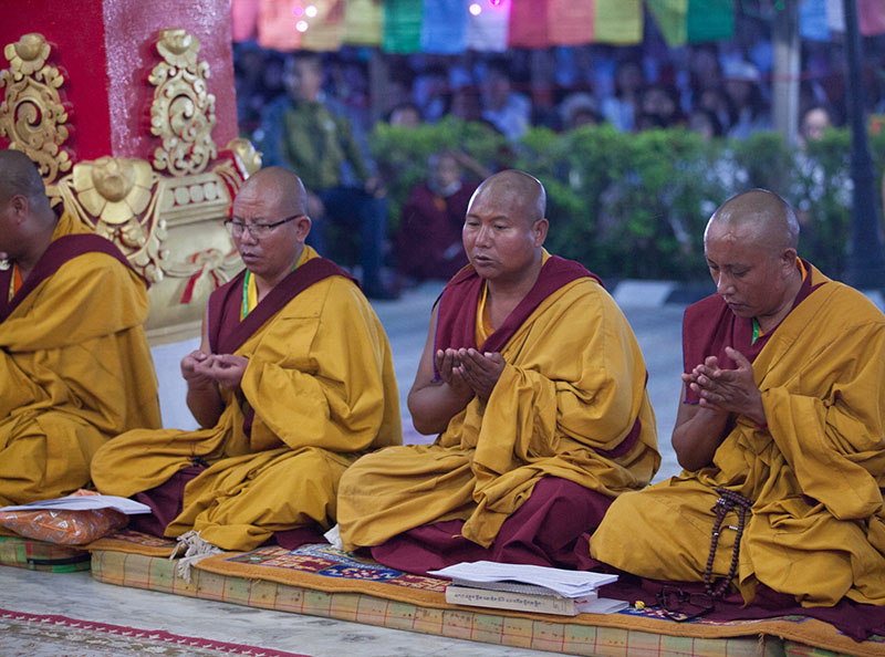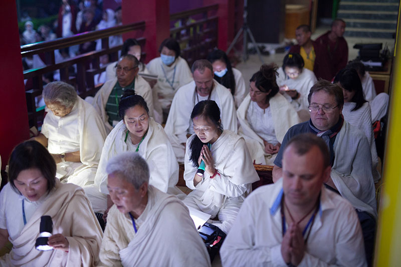 Laypeople dressed in white also assist in the ritual. All of them have received the empowerment and completed the retreat in previous years.