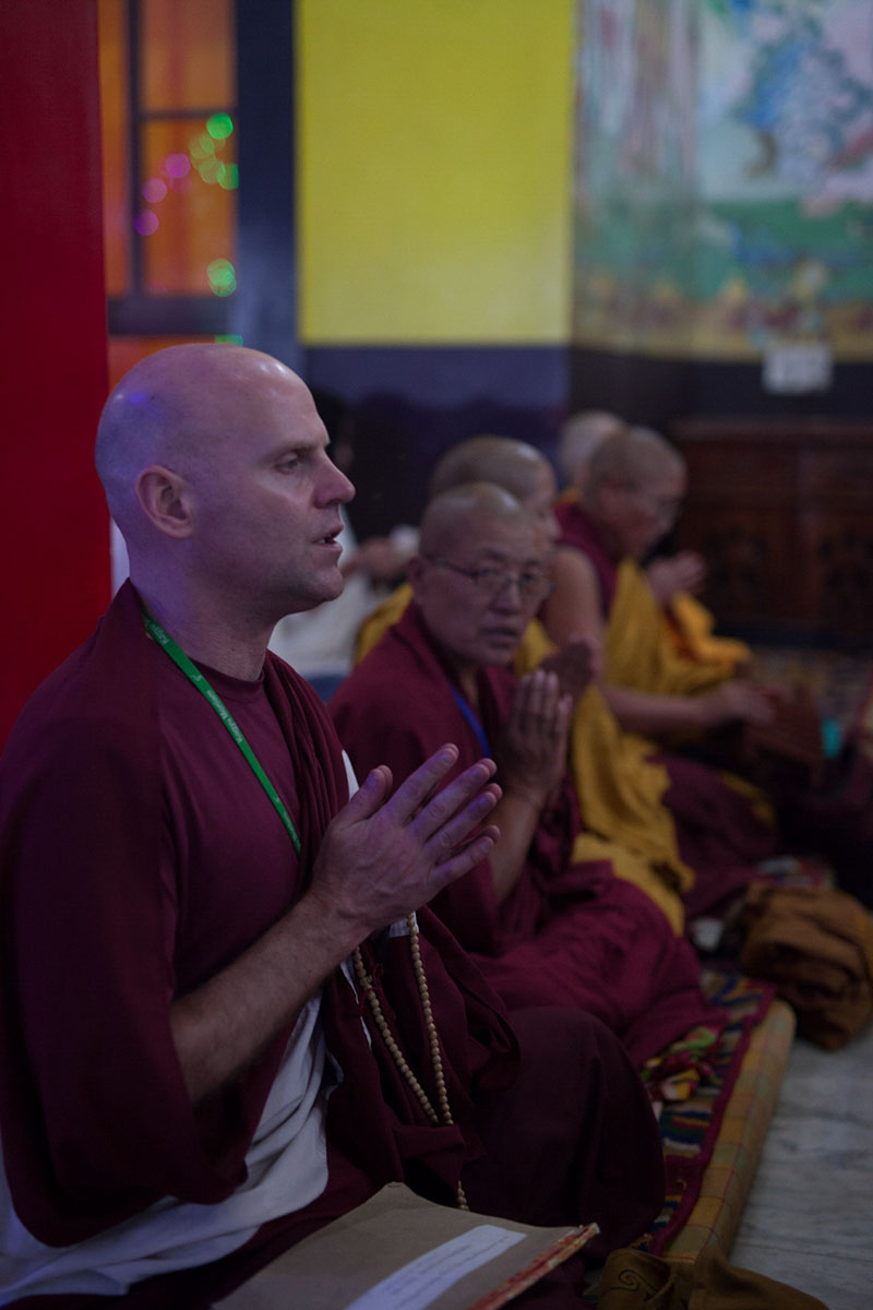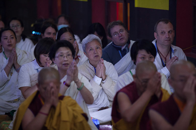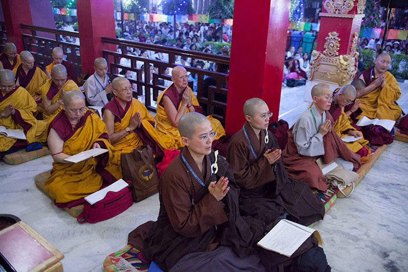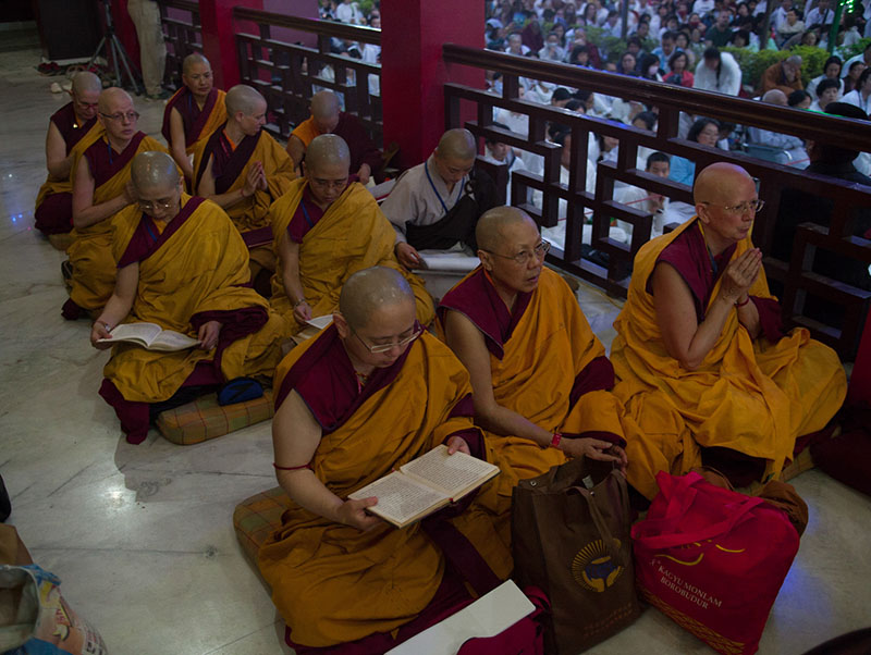 Foreign nuns from the Tibetan and Chinese traditions  assist in the ritual.