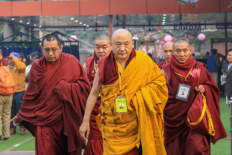 On the first day of the 36th Kagyu Monlam Chenmo, after conferring the Sojong vows, HE Goshir Gyaltsap Rinpoche visited the Mahabodhi Temple. As is the tradition, he made offerings to the golden Buddha before visiting the Great Nyingma Monlam, which is taking place concurrently with Kagyu Monlam.