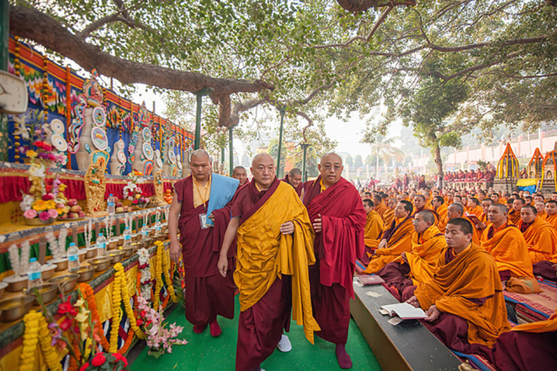 2. HE Gyaltsap Rinpoche and entourage arrive at the Mahabodhi Temple grounds.
