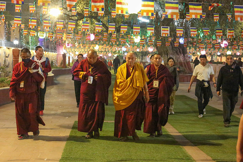 1. Goshir Gyaltsab Rinpoche and his entourage make their way through the precinct which leads to the Mahabodhi complex.