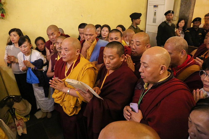 After the final session of the Kagyu Monlam on Sunday, HE Goshir Gyaltsab Rinpoche went to the Mahabodhi Stupa to make this offering.