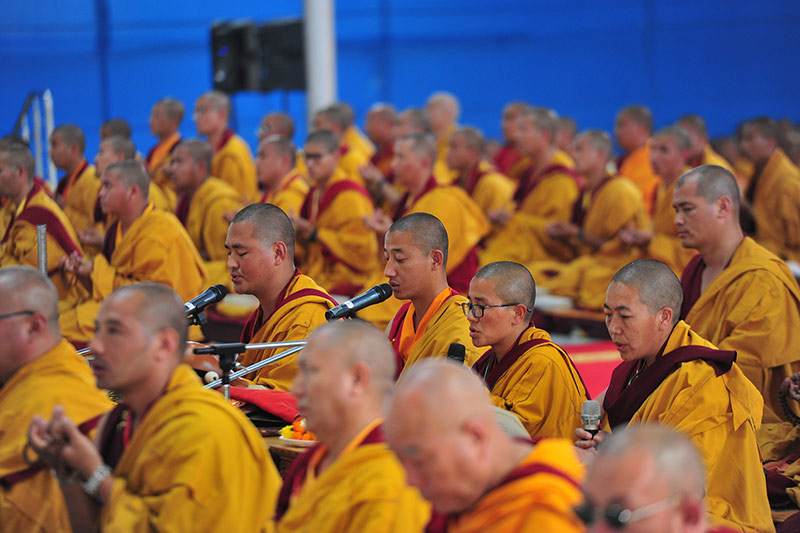ད་ལན་བདག་ཅག་གི་སྟོན་པ་བཅོམ་ལྡན་འདས་མངོན་པར་རྫོགས་པར་སངས་རྒྱས་པའི་གནས་མཆོག་རྡོར་གདན་དུ། རྒྱལ་ཡོངས་བཀའ་བརྒྱུད་སྨོན་ལམ་ཆེན་མོ་ཐེངས་སོ་ལྔ་པ་ཚོགས་པའི་སྐབས་སུ། སྔར་དང་མི་འདྲ་བར་༸རྒྱལ་དབང་ཀརྨ་པ་མཆོག་གིས་རྒྱ་བལ་འབྲུག་གསུམ་གྱི་སྒྲུབ་བརྒྱུད་ཀརྨ་ཀཾ་ཚང་གི་བཙུན་མའི་དགོན་སྡེ་ཁག་གི་བཙུན་མ་བཞི་ནས་ཀྱང་། རྒྱུན་ལྡན་བཀའ་བརྒྱུད་སྨོན་ལམ་ཆེན་མོའི་དབུ་མཛད་རྣམས་དང་ལྷན་ཅིག་ཏུ་ཞལ་འདོན་གྱི་དབུ་མཛད་གནང་དགོས་པའི་བཀའ་སློབ་ཕེབས་པ་ལྟར། ད་ལན་བཀའ་བརྒྱུད་སྨོན་ལམ་ཐེང་སོ་ལྔ་པའི་སྐབས་སུ་བཙུན་མའི་དབུ་མཛད་བཞི་ནས་ཉིན་ལྟར་བཙུན་མ་གཉིས་རེ་ནས་རེ་མོས་བཞིན་བཀའ་བརྒྱུད་སྨོན་ལམ་གྱི་དབུ་མཛད་ཆེན་མོ་རྣམས་དང་ལྷན་དུ་དབུ་མཛད་གནང་བཞིན་མཆིས། དེ་ཡང་བཙུན་མ་བཞི་པོ་དེ་དག་རྣམས་ནི་འབྲུག་དཔལ་མོ་ཆོས་ཀྱི་ལྡིང་ཁང་གི་བཙུན་མ་མཁས་མཆོག་དཔལ་མོ་དང་། བལ་ཡུལ་ཁྲ་འགུ་སྒྲོལ་མ་ལྷ་ཁང་གི་བཙུན་མ་ཚུལ་ཁྲིམས་སྒྲོལ་མ། དེ་བཞིན་ར་ལང་སྐྱེ་དགུའི་བདག་མོ་ཆོས་གླིང་གི་བཙུན་མ་འཇམ་དཔལ་དང་། ཏི་ལོག་པུར་ཀརྨ་སྒྲུབ་བརྒྱུད་དར་རྒྱས་གླིང་གི་བཙུན་མ་དབྱངས་ཅན་སྒྲོལ་མ་བཅས་ཡིན། དེ་ལ་བརྟེན་ནས་སྨོན་ལམ་གྱི་ཚོགས་བཅར་བ་གྲྭ་བཙུན་སྤྱི་དང་ལྷག་པར་དུ་ཕྱོགས་མཐའ་ཁག་ནས་ཕེབས་པའི་དད་ལྡན་སྐྱ་བོ་རྣམས་ལ་དད་ལྡན་དང་བ་འདྲེན་པའི་མིག་རྒྱན་དུ་འགྱུར་ནས། ཚང་མས་ཕོ་མོ་ཟུང་གི་སྐད་གཉིས་ལྷན་ཅིག་ཏུ་མཛད་ན་ཞལ་འདོན་གྱི་གདངས་དབྱངས་ཆེས་སྙན་མོ་འདུག་ཅེས་དགའ་མོས་དང་བསྔགས་བརྗོད་ཀྱི་མེ་ཏོག་དུ་མ་འཐོར།