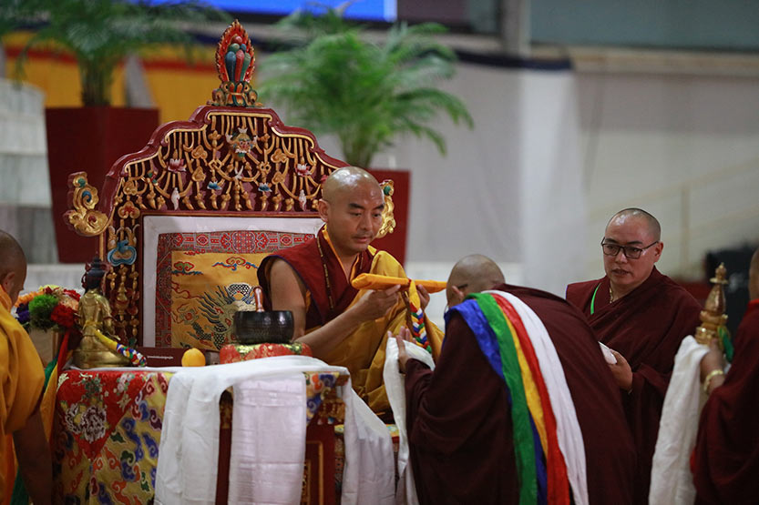 དེ་མཇུག་སླར་ཡང་མུ་མཐུད་དེ་གསུང་དོན། དང་པོ་སྒོམ་ཅུང་ཙམ་བསྐྱོན་ནས་བཞུགས་རྒྱུ་ཡིན། དེ་ཡང་ལུས་དྲན་པ་ཉེ་བར་གཞག་པ་དང་། ཚོར་བ་དྲན་པ་ཉེ་བར་གཞག་པ་ལ་སེམས་གཏད་དེ་བཞུགས་མཛོད། སྔར་བཞིན་ཁོག་སྟོད་ནས་ཁོག་སྨད་བར། བྲང་ནས་ལྟོ་བའི་ནང་བར་སེམས་གཏད། ལག་པ་གཡས་ནས་གཡོན་བར་སེམས་གཏད། དེ་བཞིན་རྐང་པ་གཡས་ནས་གཡོན་བར་སེམས་གཏད། ལུས་ཡོངས་སུ་རྫོགས་པར་སེམས་གཏད། དལ་གྱིས་མིག་ཕྱེ་ནས་སེམས་ལྷོད་པར་བཞུགས་མཛོད། མཚན་མེད་ཞི་གནས་ལ་རྟོག་པ་ཅི་ཤར་ཡང་མ་བཀག་པར་རང་བབས་སུ་འཇོག་དགོས་པ་ཡིན། ཡང་དྲན་པ་བརྗེད་མཚམས་བརྗེད་པ་རྟོགས་ཀྱང་འཐུས་པ་ཡིན། མཚན་མེད་ཞི་གནས་སྐོར་ཞུས་ཟིན་པ་ཡིན། དཀའ་ཚེགས་ཤིག་ཡོད་དེ། དེ་ཡང་ལས་སླ་དྲགས་ན་ཡང་ཇི་ལྟར་ཡིན་ནམ་སྙམ་པའི་དཀའ་ངལ་ཡོད། དཔེར་ན་ཉེ་དྲགས་ན་མི་མཐོང་བ་ཡིན། དཔེ་དེབ་སོགས་མིག་དང་བཅར་ཉེ་ཚེ་ཇི་བཞིན་མི་རིག་པ་ཡིན། རྒྱུན་དུ་རྣམ་རྟོག་འདྲ་མིན་འཆར་བ་དེ་ཉིད་ཆེས་དཀའ་བ་ཞིག་ཡིན། སྒོམ་རྒྱབ་སྐབས་རྣམ་རྟོག་དུ་མ་འཆར་བ་དེ་ཡང་ལེགས་པ་ཡིན། སྒོམ་གྱི་གྲོགས་དང་སྒོམ་གྱི་རྟེན་དུ་མ་ཡོད། དེ་བཞིན་རྣམ་རྟོག་ཁོ་རང་སེམས་མ་ཡིན་པའི་རྟེན། སེམས་རྩེ་གཅིག་པའི་གྲོགས། རྣམ་རྟོག་ཁོ་རང་སེམས་རྩེ་གཅིག་པའི་རྟེན་དུ་གྱུར་ཡོད། རང་རེ་ལ་རྣམ་རྟོག་དུ་མ་ཡོད། དེ་ཉིད་མ་བཀག་པར་སྒོམ་གྱི་རྟེན་དུ་འགྱུར་དགོས་པ་ཡིན། ཞི་གནས་སྐབས་དབུགས་ལ་སེམས་གཏད་པ་ལྟར། ད་ལྟ་རང་རེས་རྣམ་རྟོག་ལ་སེམས་གཏད་དེ་གནས་དགོས་པ་ཡིན། རྣམ་རྟོག་ནི་ཕྲེང་བ་ལྟ་བུ་དང་། དྲན་པ་དེ་ཉིད་ཕྲེང་རྡོག་སྒུལ་བར་བྱེད་པའི་མཐེ་བོང་ལྟ་བུ་ཡིན། ལུས་བསྲངས་ཏེ་རྣམ་སྣང་ཆོས་བདུན་ངང་བཞུགས་དགོས། འདི་སྐབས་རྣམ་རྟོག་གི་གསང་བ་མྱོང་བ་གཉིས་ཡོད། རྣམ་རྟོག་ལ་ལྟ་དུས་རྣམ་རྟོག་བརླག་འགྲོ་བཞིན་ཡོད། རྣམ་རྟོག་ལྟ་མཁན་ལ་དྲན་པ་ཟེར། ཉམས་མྱོང་གཉིས་པོ་དེ། རྣམ་རྟོག་ལ་བལྟས་ཏེ་མུ་མཐུད་དེ་གནས་ཐུབ་པ་ཡིན། དཔེར་ན་བརྙན་འཕྲིན་ལྟ་བུ་ཡིན། གློག་བརྙན་གྱི་རང་བཞིན་རས་གཞིར་ཤར་བ་ཐམས་ཅད་ལྟ་སྐབས་སྣང་བ་སྣ་ཚོགས་འཆར་བ་ཡིན། དེ་ལྟར་རྣམ་རྟོག་ལ་ལྟ་ཐུབ་མ་ཐུབ་པ་ཡང་སྐྱེས་བུའི་ཁམས་ཀྱི་ཁྱད་པར་ཡིན། ཁ་སྔོན་ཁོ་བོས་དཔེ་ཞིག་ཞུས་པ་ཡིན། དཔེ་དེ་རྒྱུགས་ཆུ་ཡིན། རྒྱུགས་ཆུ་ལ་ལྟ་བ་ཡིན་ན་དེ་ཉིད་འཇམ་པོ་ཞིག་བབས་པའམ། རྩུབ་པོ་ཞིག་བབས་པའམ་དེ་ཉིད་ཁྱད་པར་མེད། འོན་ཀྱང་དངོས་སུ་རྒྱུགས་ཆུར་ཞུགས་ཚེ་འཆི་བའི་ཉེན་ཡོད། ད་ལྟ་འདིར་ཕྱག་རྒྱ་ཆེན་པོ་སྒོམ་པའི་སྐབས་ཡིན་དུས་བཟང་ངན་གྱི་རྟོག་པ་ཅི་ཡང་མེད། རྣམ་རྟོག་ལ་ལྟ་ཐུབ་མ་ཐུབ་གཉིས་སུ་འདུས་པ་ཡིན། རྣམ་རྟོག་ལ་ལྟ་མ་ཐུབ་པ་ཡིན་ནའང་བཟང་སྟེ་གནས་པ་ལ་བབས་པ་ཡིན། ལྟ་ཐུབ་ཚེ་རྣམ་རྟོག་སྒོམ་ལ་འགྱུར་བཞིན་ཡོད། ས