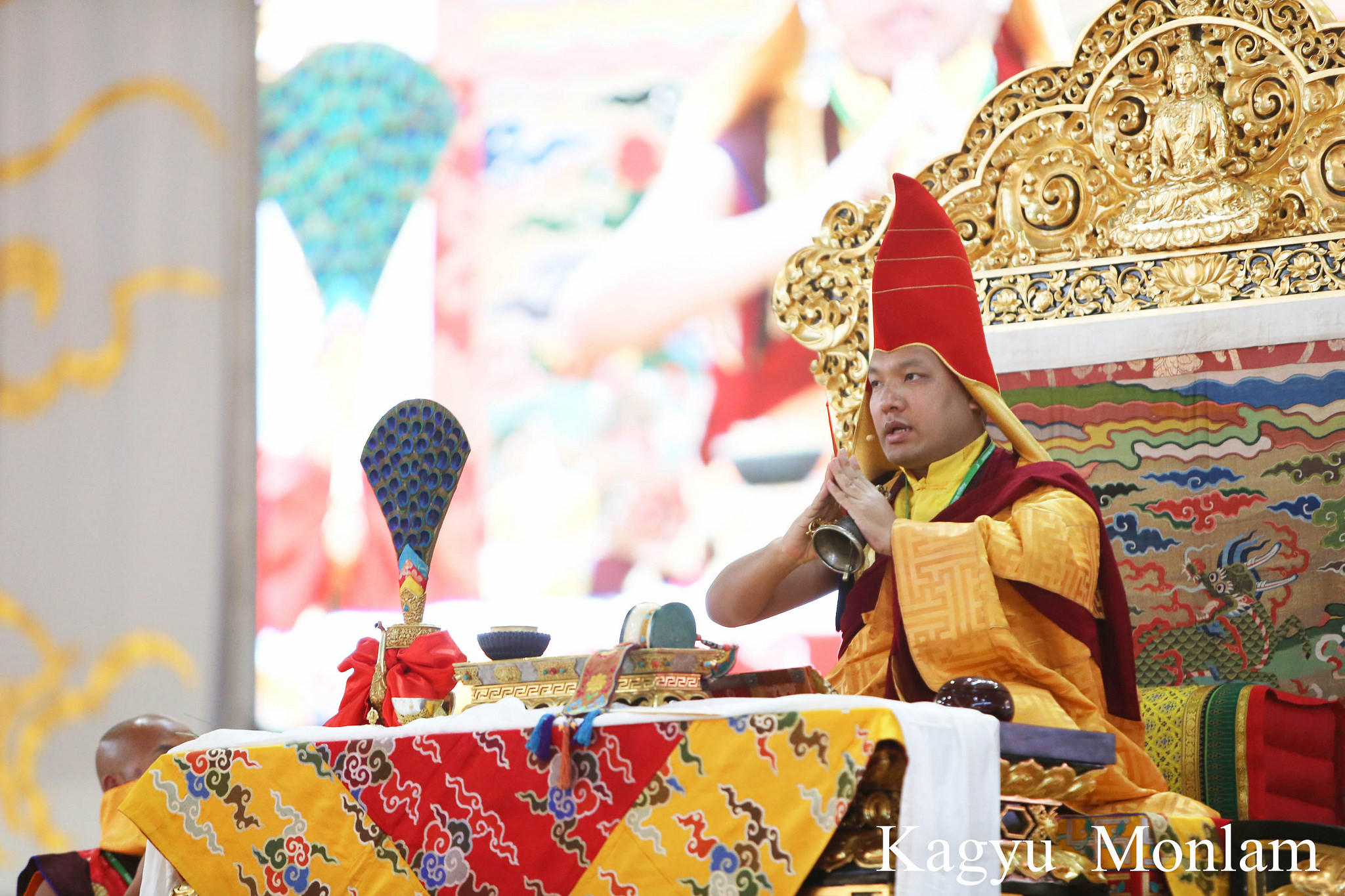 ཕྱི་ལོ་ ༢༠༡༧ ཟླ་བ་ ༢ ཚེས་ ༧ ཉིན་གུང་ཡོལ་ཆུ་ཚོད་ ༢ པའི་ཐོག་དཔལ་༸རྒྱལ་དབང་ཀརྨ་པ་མཆོག་ནས་༸སྐྱབས་རྗེ་རྒྱལ་ཚབ་རིན་པོ་ཆེ་དང་མི་འགྱུར་རིན་པོ་ཆེས་དབུས་པའི་བླ་སྤྲུལ་རྣམ་པ་དང་དེ་བཞིན་མཁན་སློབ་དགེ་འདུན་འདུས་པ་རྒྱ་མཚོ་དང་། ཕྱི་ནང་རྒྱལ་ཁབ་དུ་མ་ནས་ཕེབས་པའི་དད་ལྡན་ཆོས་ཞུ་བ་ཁྲི་ཚོ་བརྒལ་བར་དབང་གི་སྔོན་འགྲོ་སྟ་གོན་གྱི་དབང་སྩལ། སྟ་གོན་ཞེས་པ་ནི་གྲ་སྒྲིག་གི་དོན་དང་། དེ་ཡང་བླ་མའི་སྐུ་དྲུང་ནས་དབང་ཞུས་ཏེ་དབང་གི་དམ་ཚིག་རྣམས་རང་གིས་ཚུལ་བཞིན་ཁས་ལེན་བྱ་རྒྱུ་ཡིན་ཞེས་པའི་དོན་ཡིན། གཞན་ཡང་དབང་ཞུ་བ་པོ་དེ་ཉིད་བླ་མས་དབང་སྩལ་ཡུལ་གྱི་སྐལ་ལྡན་གྱི་གདུལ་བྱ་ཡིན་མིན་བརྟག་པའི་ཕྱིར་དུ་ཡིན། དེ་ལ་བརྟག་ཐབས་ཀྱི་རྫས་བཞི་ཡོད་དེ། ཁྱོར་ཆུ། སོ་ཤིང་། དཔུང་བཏགས་སྲུང་སྐུད། ཀུ་ཤ་སྟེ་བཞི་ཡིན། དེ་ལས་དང་པོ་ཁྱོར་ཆུ་ནི་དམ་ཚིག་ཁས་བླང་གི་ཕྱིར་བེད་སྤྱོད་པ་ཡིན། རྫས་ལྷག་མ་གསུམ་ནི་བརྟག་པའི་ཕྱིར་བེད་སྤྱོད་པ་ཡིན། དེ་ཡང་བརྟག་ཐབས་མི་འདྲ་བ་གཉིས་སུ་ཡོད་པ་ལས། དང་པོ་ནི་མངོན་སུམ་དུ་བརྟག་པ་དང་། གཉིས་པ་རྨི་ལམ་བརྟག་པ་སྟེ་གཉིས་ཡིན། མངོན་སུམ་གྱི་བརྟག་ཚུལ་ནི་དཀྱིལ་འཁོར་ནང་སོ་ཤིང་བོར་བ་དེ་ཡིན། དཔུང་བཏགས་སྲུང་སྐུད་ནི་རྨི་ལམ་ལ་བར་ཆད་མི་འབྱུང་བའི་ཕྱིར་དང་། རྩྭ་ཀུ་ཤ་ནི་རྨི་ལམ་བཟང་ངན་བརྟག་པའི་སླད་དུ་ཡིན། སྤྱིར་རང་ཉིད་ལ་དབང་ཐོབ་པའི་སྐལ་ལྡན་གྱི་གདུལ་བྱ་ཡིན་མིན་གོང་གི་བརྟག་པ་དེ་དག་གི་སྒོ་ནས་ཚུལ་བཞིན་དཔྱད་དགོས་ཀྱང་། དེང་རྟེན་འབྲེལ་གྱི་ཚུལ་དང་གཙོ་བོར་དད་པ་དང་མོས་པ་བཅོས་མ་མེད་པ་ཞིག་ལྡན་ཚེ་ཀུན་ལ་ཐོབ་པ་ཡིན། དེ་ཡང་༸རྒྱལ་དབང་མཆོག་ནས་བཀའ་སྩལ་གསལ་དུ། ད་ལན་བཀའ་བརྒྱུད་སྨོན་ལམ་ཐེངས་སོ་བཞི་པར་ཡི་དམ་འཁོར་ལོ་བདེ་མཆོག་གི་ཐོག་ནས་དབང་བྱ་རྒྱུ་ཡོད་པ་ལས་དེ་རིང་དབང་གི་སྟ་གོན་དང་། སང་ཉིན་དབང་གི་དངོས་གཞི་བྱ་རྒྱུ་ཡིན། ད་ལན་ཁྲིད་ཡིག་ངེས་དོན་སྒྲོན་མེ་ལས་བླ་མའི་རྣལ་འབྱོར་གྱི་ཁྲིད་བཞག་ཡོད། བླ་མའི་རྣལ་འབྱོར་གྱི་སྐབས་ཡི་དམ་གང་རུང་གི་སྒོ་ནས་རྒྱུད་ལ་སྐྱེ་བར་བྱ་དགོས་པར་བརྟེན་དབང་ཞིག་བྱ་དགོས་ཤིང་། ཐུན་མོང་གི་སྔོན་འགྲོའི་ནང་བླ་མའི་རྣལ་འབྱོར་གྱི་ཁྲིད་ཙམ་མ་ཟད་༸རྒྱལ་དབང་མི་བསྐྱོད་རྡོ་རྗེའི་ཐུན་བཞི་བླ་མའི་རྣལ་འབྱོར་གྱི་ཁྲིད་ཀྱང་མཆིས་པས་དེ་དང་འབྲེལ་བའི་ཕྱིར་བདེ་མཆོག་གི་དབང་དེ་བཞིན་བགྱིད་རྒྱུ་བྱས་པ་ཡིན། དེ་ཡང་རྒྱལ་སྲས་ཆེན་པོ་ཞི་བ་ལྷས། དལ་འབྱོར་འདི་ནི་རྙེད་པར་ཤིན་ཏུ་དཀའ། །སྐྱེས་བུའི་དོན་གྲུབ་ཐོབ་པར་གྱུར་པ་ལ། །གལ་ཏེ་འདི་ལ་ཕན་པ་མ་བསྒྲུབས་ན། །ཕྱིས་དེ་ཡང་དག་འབྱོར་པ་ག་ལ་འགྱུར། །ཞེས་སོགས་ཀྱི་སྐབས་ནས་བསྟན་པ་བཞིན། རང་རེར་ཆོས་སྒྲུབ་