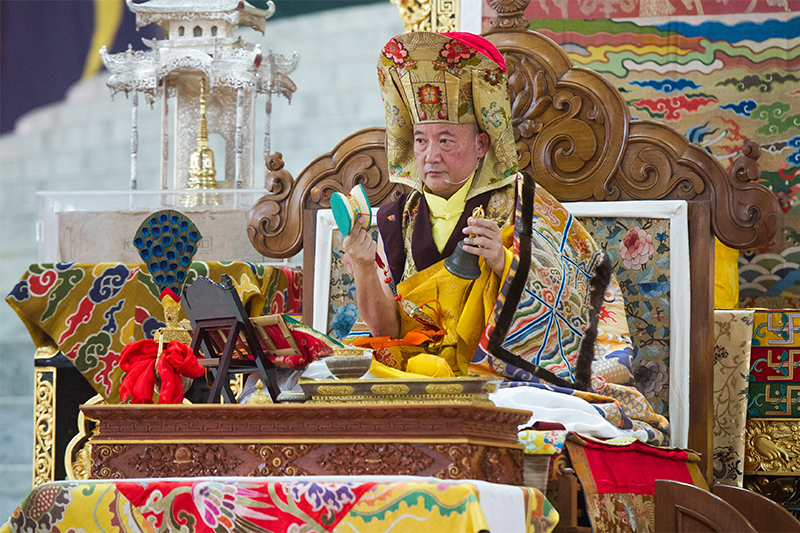 ཕྱི་ལོ་ ༢༠༡༧ ཟླ་ ༢ ཚེས་ ༢༦ ཉིན་༸སྐྱབས་རྗེ་རྒྱལ་བའི་རྒྱལ་ཚབ་ཆེན་པོ་ནས་འདུས་པ་ཀུན་ལ་དབུ་ཞྭ་མཐོང་གྲོལ་ཪིན་པོ་ཆེའི་མཇལ་ཁ་བཀའ་དྲིན་ལེགས་པར་བསྐྱངས་རྗེས་སླར་ཡང་རྩ་གསུམ་དྲིལ་སྒྲུབ་ཀྱི་ཚེ་དབང་ཟབ་མོ་སྩལ་གནང་མཛད། དེ་ཡང་དབང་སྒྲུབ་སོགས་སྟ་གོན་སྔོན་དུ་སོང་ཟིན་ཏེ། དབང་དངོས་གཞི་འགོ་འཛུགས་ལ་ཉེ་བ་ན་ཐོག་མཪ་༸སྐྱབས་རྗེ་རྒྱལ་བའི་རྒྱལ་ཚབ་མཆོག་ནས་ཐོག་མའི་ཀུན་སློང་ཇི་ལྟར་བཅོས་ཚུལ་དང་རྩ་གསུམ་དྲིལ་སྒྲུབ་གྱི་བྱུང་རིམ་མདོར་བསྡུས་ལ་ཤིན་ཏུ་གནད་ཆེ་བ་ཞིག་གསུངས་པ་འདི་ལྟར།