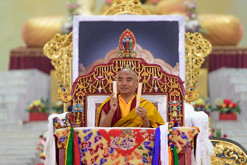 ཆོས་ར་འདིར་ལྷན་འཛོམས་གྲུབ་པ་དང་། ༧སྐྱབས་རྗེ་རིན་པོ་ཆེ་མཆོག་ནས་དམངས་ལ་དྲི་བ་རེ་ཟུང་ཞིག་འདྲི་བའི་གོ་སྐབས་སྩལ། དགེ་འདུན་པ་ཞིག་གིས་དྲན་པ་བརྟན་པོ་ཡོང་ཆེད་གང་བྱ་དགོས་ཞེས་དྲི་བ་ཞུས། ཞུས་ལན་དུ་དྲན་པ་ཡུན་ཐུང་ལ་ལན་མང་པོར་གཏད་དགོས་པར་གསུངས། ཡང་དྲི་བ་ཞིག་ལ་ཞི་གནས་སྒོམ་སྐབས་གཡང་ནས་ལྷུང་བ་ལྟ་བུའི་ཉམས་ཤིག་ཡོང་གི་འདུག་དེ་ཉམས་གསུམ་པོ་གང་གི་ཁོངས་སུ་བསྡུས་ཞེས་པར། ལན་དུ་སྟོང་ཉམས་ཡིན་ཞེས་ལན་ཟབ་བསྐྱངས་རྟིང་། ཐུན་དང་པོའི་ཐུན་མཚམས་སྐབས་ང་ལ་དམིགས་པ་གཏད་དགོས་པའི་ནང་སྦྱོང་གནང་བ་དེའི་ཐད་དུ་ང་ལ་བལྟ་དུས། ང་བརླག་པར་གཟིགས་པ་དང་། ང་མི་རྟག་པ་སྡུག་བསྔལ་གཞན་དབང་ཅན་དུ་གཟིགས་པ་དང་། ཡང་ན་རྟག་གཅིག་རང་དབང་ཅན་དུ་འཛིན་པའི་ངར་འཛིན་དེ་གཟིགས་པ་སོགས་གང་འབྱུང་གི་འདུག་ཅེས་བཀའ་འདྲི་བསྐྱངས། ཐེག་པ་ཆེན་པོའི་ལྷག་མཐོང་སྐབས་ངར་འཛིན་གྱི་ཡུལ་དང་དེའི་འཛིན་སྟངས་དེ་ལེགས་པོར་ངོས་འཛིན་གྱི་ཡོད། ངོས་འཛིན་ཏེ་གང་རྙེད་ཀྱི་ཡོད་ཅེ་ན། དེ་མི་རྟག་སྡུག་བསྔལ་གཞན་དབང་ཅན་དུ་རྙེད། དེ་གལ་ཆེན་པོ་ཡིན། དེ་ཉན་ཐོས་དང་ཐུན་མོང་ཡིན། ཉན་ཐོས་ཐེག་པའི་ལྷག་མཐོང་ཡིན། ཐེག་ཆེན་གྱིས་མི་རྟག་སྡུག་བསྔལ་གཞན་དབང་ཅན་དེ་ཡང་བདེན་མེད་དུ་གཏན་ལ་ཕབ་ཀྱི་ཡོད། བདེན་མེད་དུ་གཏན་ལ་ཕབ་ཚུལ་ནི། དཔེར་ན། བུམ་པ་ཞེས་པ་དེ་ལྟོ་བ། མཆུ། ཞབས་ཞུམ་སོགས་རྡུལ་དུ་མ་འཛོམས་པ་ཞིག་ལ་བཏགས་ཀྱི་ཡོད། དེ་རེ་རེ་ནས་སོ་སོར་བསལ་ན་བུམ་པ་གང་དུའང་མི་རྙེད། མཐར་རྡུལ་ཕྲན་ལྷག་གི་ཡོད། དེ་ལ་བྱེ་མདོ་གཉིས་ཀྱིས་རྡུལ་ཕྲན་ཆ་མེད་དུ་འདོད་པ་དང་། སེམས་ཙམ་པས་རྡུལ་ཕྲན་ཆ་མེད་དེ་ཡང་མ་གྲུབ་པ་གཏན་ལ་འབེབས་ཚུལ་ཐད་དཔེ་ཚ་ལུ་མ་དང་སྦྱར་ནས་གོ་བདེ་བར་གསུངས། སྔོན་བྱུང་མུ་སྟེགས་རྣམས་ཀྱིས་རྡུལ་ཕྲན་ཆ་མེད་རྟག་པའི་ངོ་བོར་འདོད། ཚན་རིག་པས་རྡུལ་ཕྲན་དེ་ལ་ Atom ཞེས་པའི་ཐ་སྙད་བཏགས་ཏེ་དེ་ལོ་བདུན་ཅུའི་སྔོན་དུ་རྟག་པ་གཅིག་པུ་བདེན་གྲུབ་དུ་ཁས་ལེན་གྱི་ཡོད། དེང་སང་ལོ་བཅུ་བཅུ་གཉིས་འགྲོ་ཡི་ཡོད། རྡུལ་གཅིག་ལ་བརྒྱ་ཆ་དགུ་བཅུ་གོ་དགུ་སྟོང་པ་ཡིན་པ། བརྒྱ་ཆ་གཅིག་དངོས་པོར་ཡོད། དེ་ཡང་བརྒྱ་ཆ་དགུ་བཅུ་གོ་དགུ་སྟོང་པ་ཡིན་པ་བཤད་ཀྱི་ཡོད། ཐེག་ཆེན་ལྷག་མཐོང་གིས་རྡུལ་ཕྲན་དང་ང་སོགས་ཅི་ཡང་མ་གྲུབ་པར་བདེན་མེད་དུ་གཏན་ལ་ཕབ་ཀྱི་ཡོད། རིན་པོ་ཆེ་མཆོག་གིས་མཐོང་བ་མངོན་གྱུར་གྱི་དཔེ་ཕྱག་གཡས་གཡོན་གཉིས་ལ་དབྱུག་པ་རིང་ཐུང་གཉིས་བཏོན་ཏེ། དེ་གཉིས་གང་ཐུང་བ་འདུག་ཅེས་དྲི་བ་མཛད། དམངས་ནས་གཡས་ལ་ཡོད་པ་དེ་ཐུང་ཞེས། སླར་དེ་ལས་ཐུང་བ་ཞིག་བཏོན་ཏེ། ད་གང་ཐུང་གི་འདུག་ཅེས། དེ་ལ་ལྟོས་དེ་གོང་གི་རིང་པོར་འགྱུར། མདོར་ན་རིང་ཐུང་དེ་ཡང་གཅིག་ལ་ལྟོས་ནས་རིང་ཐ