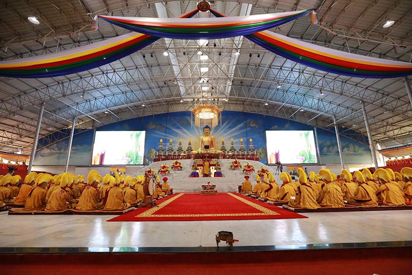 ཕྱི་ལོ་ ༢༠༡༨ ཟླ་ ༢ ཚེས་ ༢༦ ཉིན་སྔ་དྲོ་འཁོར་ལོའི་དུས་ཚོད་དྲུག་པའི་ཐོག་༸སྐྱབས་རྗེ་རྒྱལ་བའི་རྒྱལ་ཚབ་རིན་པོ་ཆེ་མཆོག་བཞུགས་གནས་གཏེར་སྒར་དགོན་ནས་དུང་རྒྱ་སྤོས་སྣེས་སྤྱན་འདྲེན་གྱིས་སྨོན་ལམ་ཆོས་རར་ཞབས་པད་གསེར་གྱི་རེ་ཁཱ་མངོན་པར་བཀོད་དེ་བཞུགས་ཁྲིར་འཁོད་རྟིང་། ༸སྐྱབས་རྗེ་མི་འགྱུར་རིན་པོ་ཆེས་དབུས་བླ་སྤྲུལ་མཁན་སློབ་དགེ་འདུན་འདུས་པ་རྒྱ་མཚོ་དང་ཚོགས་ཞུགས་ཁྱིམ་པ་ཕོ་མོ་ཀུན་ལ་ཐེག་ཆེན་གསོ་སྦྱོང་གི་སྡོམ་པ་འབོགས་པར་མཛད། དེ་ཡང་གསོ་སྦྱོང་ཞེས་པ་ནི་དགེ་བ་གསོ་ཞིང་སྡིག་པ་སྦྱོང་བའི་དོན་སྟེ། ཇི་སྐད་དུ། སྡིག་པ་གསོ་ཞིང་དགེ་བ་སྦྱོང་བ་སྟེ། དེ་ཕྱིར་གསོ་སྦྱོང་ཞེས་ནི་མཚན་གསོལ་ཏོ། །ཞེས་གསུངས་པ་ལྟར་ཡིན་ཅིང་། གསོ་སྦྱོང་གི་སྡོམ་པ་མནོས་རྗེས་བསྙེན་གནས་ཉིན་ཞག་ཅིག་གི་སྡོམ་པ་ལྟར་གསོ་སྦྱོང་གི་སྡོམ་པ་ཉིན་ལྟར་ཐོབ་རིམ་བཞིན་སྐྱ་སེར་ཕོ་མོ་སུ་རུང་ནས་ཕྱི་དྲོའི་ཁ་ཟས་སོགས་སྤང་བྱ་རྣམས་ངེས་པར་སྤོང་དགོས་པ་ཙམ་མ་ཟད། སྤང་བླང་གི་གནས་ལ་དྲན་ཤེས་བག་ཡོད་ཚུལ་བཞིན་བསྟེན་དགོས་པ་ཤིན་ཏུ་གཅེས།