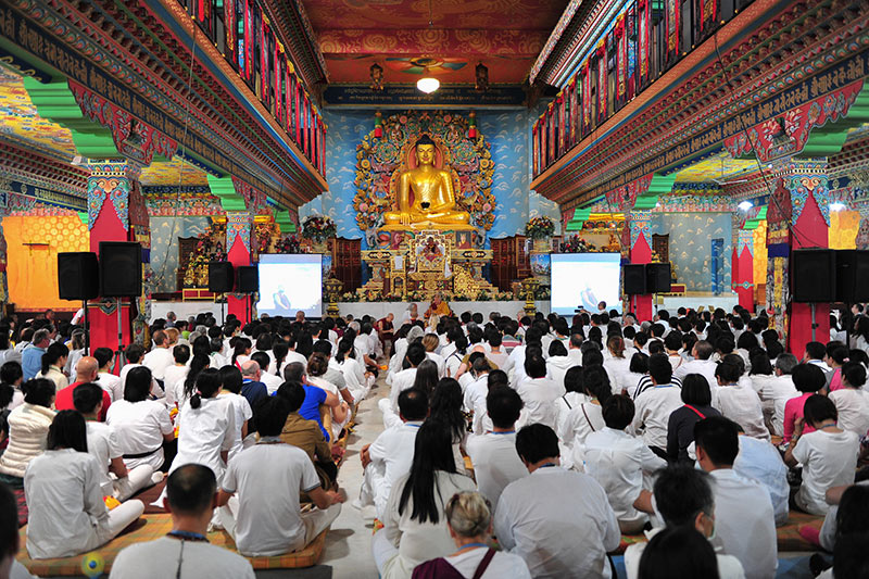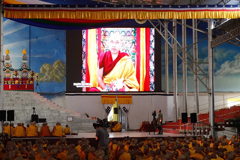 ཕྱི་ལོ་ ༢༠༡༨ ཟླ་ ༣ ཚེས་ ༡ ཉིན་གུང་ཡོལ་ཚོུད་གསུམ་པའི་ཐོག་གཏེར་སྒར་འདུས་ཁང་ནང་བླ་མའི་སྲི་ཞུ་བ་དང་། སྨོན་ལམ་ཚོགས་མི་རྣམས་ལ་༧སྐྱབས་རྗེ་རྒྱལ་བའི་རྒྱལ་ཚབ་མཆོག་ནས་བཀའ་སློབ་ལམ་སྟོན་ཕེབས་གསལ་དུ། “སྤྱིར་ད་ལྟའི་རྣམ་འདྲེན་བཞི་པ་སངས་རྒྱས་ཤཱཀྱ་ཐུབ་པའི་བསྟན་པ་ཡིན་པ་དང་། མ་འོངས་རྣམ་འདྲེན་དྲུག་པ་སེངྒེ་སྒྲ་དེ་ཉིད་རང་རེའི་མགོན་དཔུང་བླ་ན་མ་མཆིས་པ་༧དཔལ་རྒྱལ་དབང་ཀརྨ་པ་འདི་ཉིད་ཡིན་ཞིང་། སངས་རྒྱས་རྣམས་མཐའ་མེད་པའི་སེམས་ཅན་གྱི་དོན་མཛད་པོ་ཡིན་པས། ད་ལྟ་ཁྱེད་རང་ཚོས་སངས་རྒྱས་ཀརྨ་པའི་ཞབས་ཏོག་བསྒྲུབ་པ་འདི་སྐལ་བ་བཟང་ཞིང་བསོད་ནམས་དཔག་ཏུ་མེད་པ་ཡིན། དེ་ཙམ་མ་ཟད་སངས་རྒྱས་ཀརྨ་པའི་འདས་པའི་སྐུ་ཕྲེང་བཅུ་དྲུག་དང་། མ་འོངས་འབྱུང་འགྱུར་གྱི་སྐུ་ཕྲེང་ཉེར་ལྔ་པོ་ཐམས་ཅད་ལ་ཞབས་ཏོག་ཞུས་པ་སྒོ་ཀུན་ནས་མཚུངས་པ་ཡིན། ཁྱེད་རྣམ་གྱི་ཞབས་ཏོག་སྣ་རེ་བསྒྲུབ་པ་དེ་ཡང་ཡུན་རིང་ཞིང་ཚད་མེད་པ་ཡིན།” ཞེས་བཀའ་སྩལ།