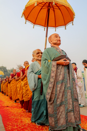 羅漢和托缽僧隊緩緩邁向舞台,莊嚴肅穆,令人動容