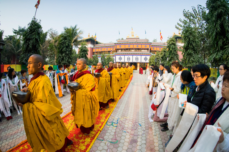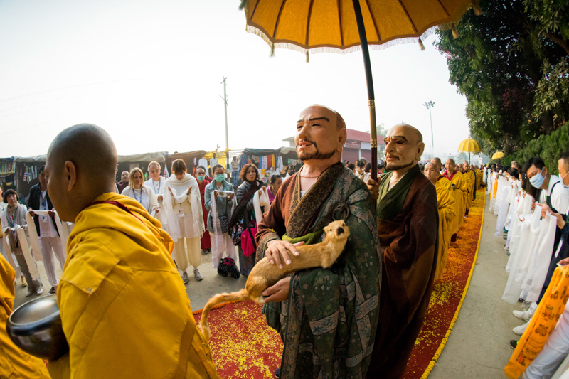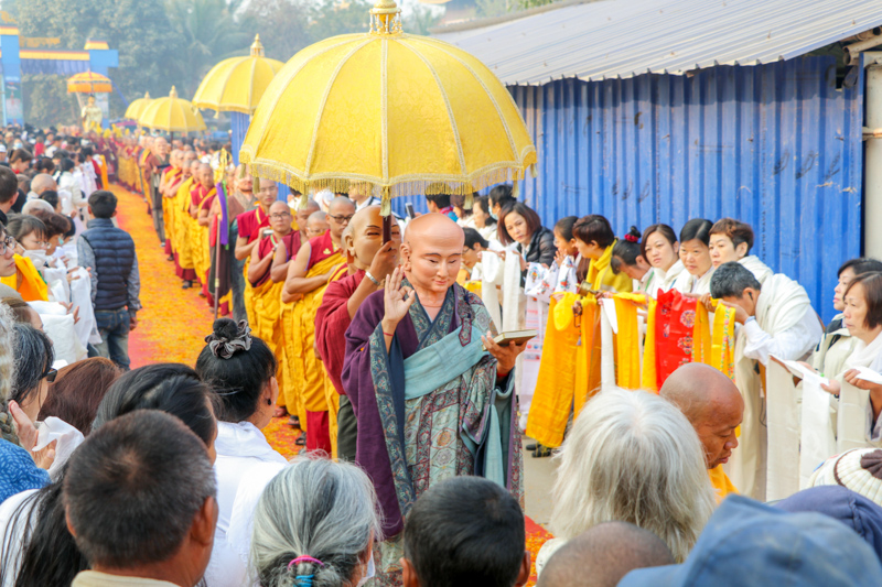 持缽僧眾重現當年佛陀僧團托缽行腳的古風
