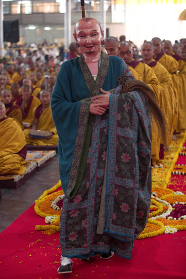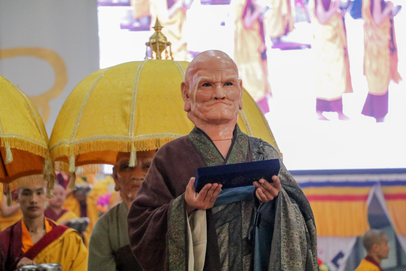 今年嶄新的羅漢面具也是由華人藝術家捉刀,仿製於第十七世大寶法王噶瑪巴的畫作
