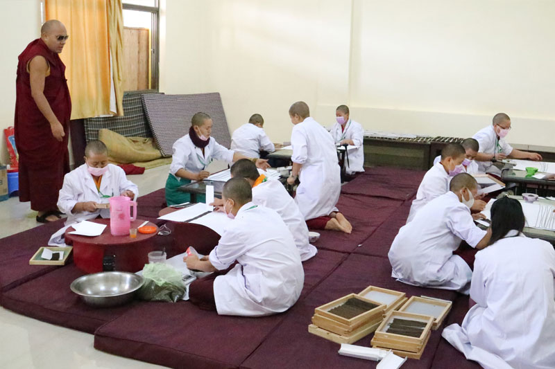 法王噶瑪巴每天巡視製香工作坊,關切她們學習的情況。