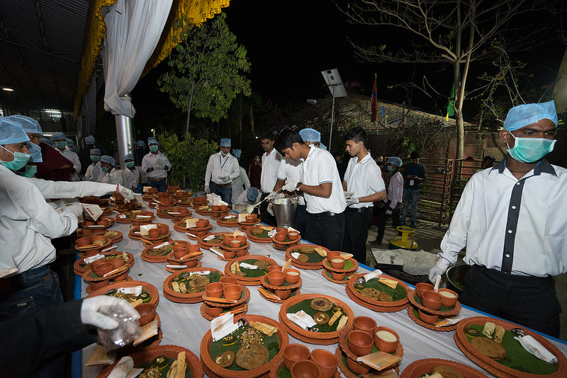 服裝整齊、秩序井然的印度服務生,接力將一盤盤的美味佳餚傳遞到數千名會眾手中,菜色和服務水準的評比,絕對是五星級。