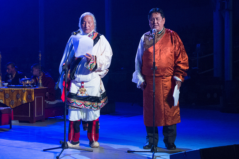 藏文和英文主持人雪樂.達慶(Sherab Tharchin) 和倫竹.次仁(Ngodup Tsering)介紹晚會的演出者和節目。