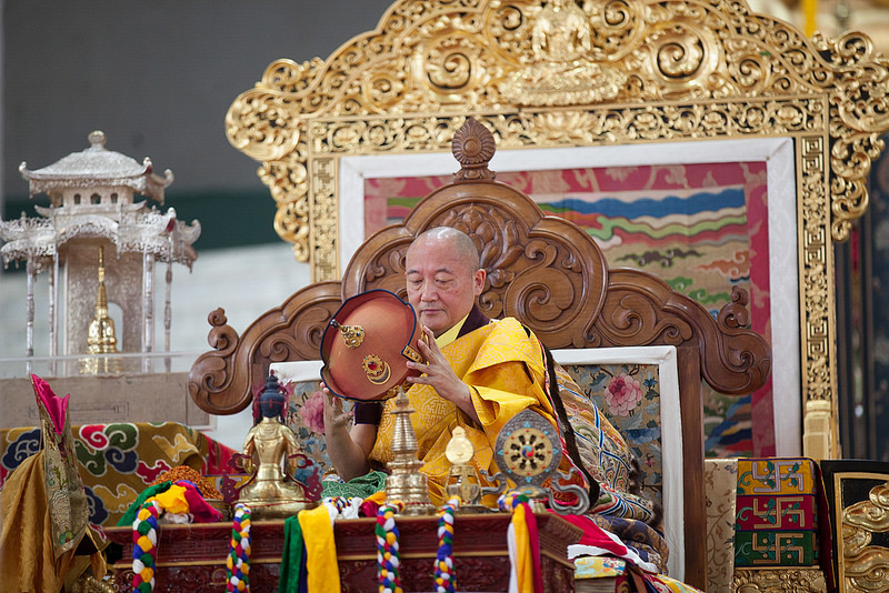 金色光芒照射在法王噶瑪巴身上,更添壇城的輝煌與莊嚴。