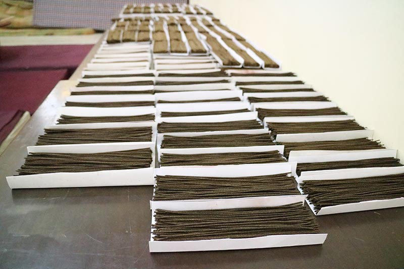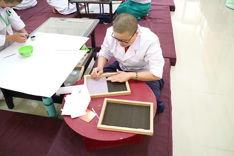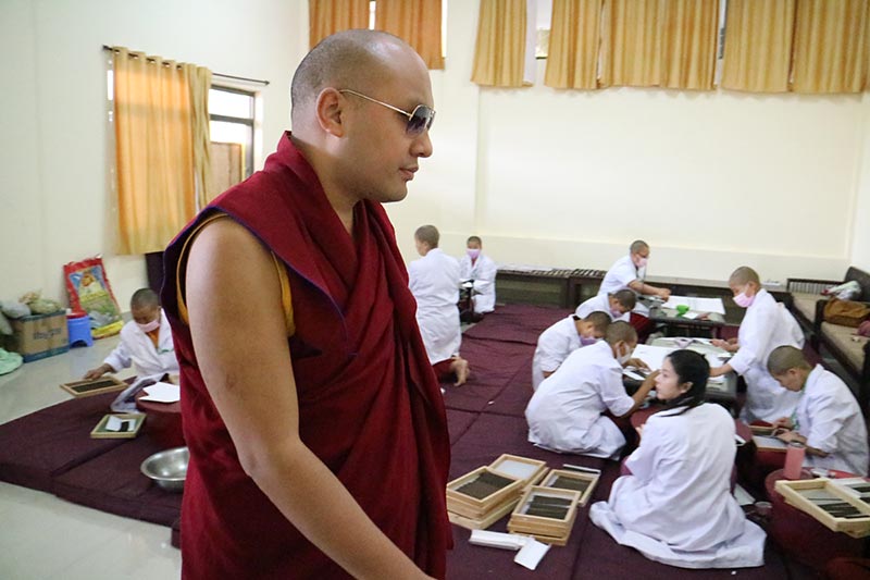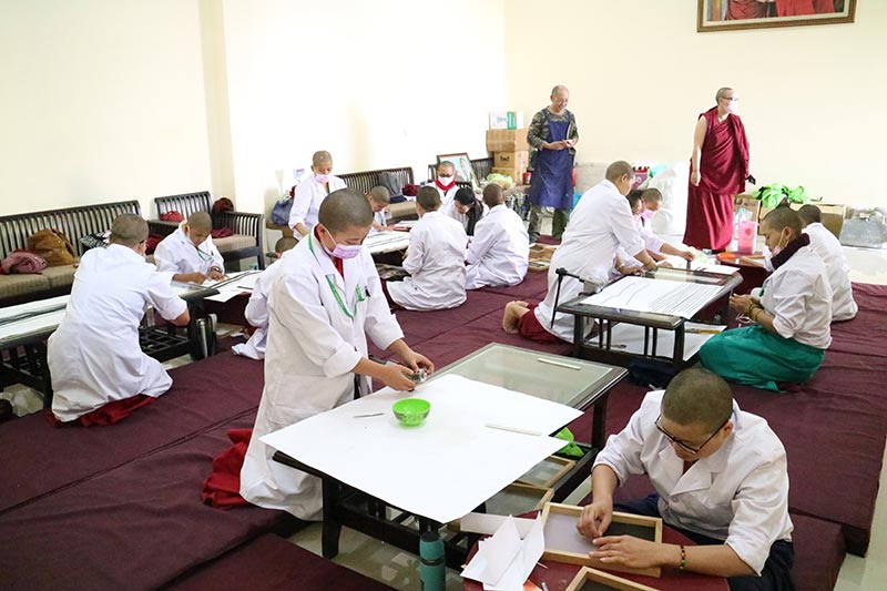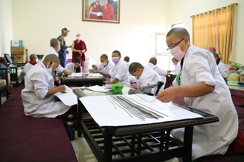 製作多瑪的僧人正聚精會神雕塑一尊小型多瑪